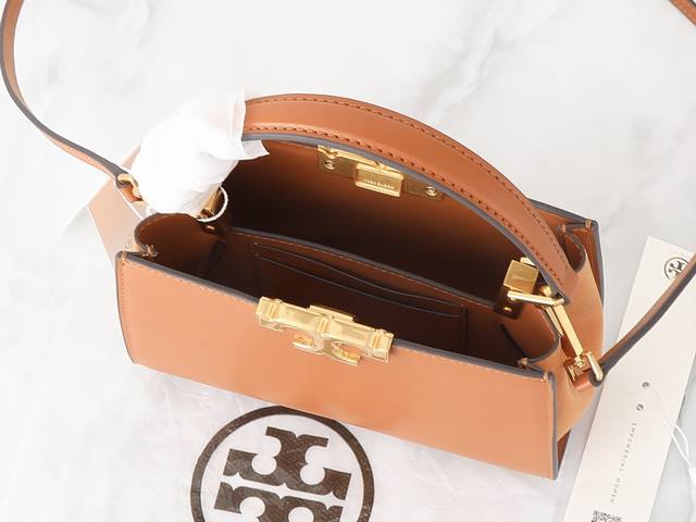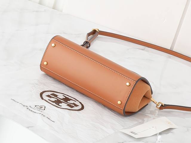 Original quality genuine leather series, new product, pay attention to details. Tory Burch's new Eleanor leather handbag, adorned with exquisite suede trim. The bag has a clean and structured shape, with the iconic double T logo standing out prominently. A masterpiece of craftsmanship, it can be used with the handle or the detachable crossbody strap, easily switching between various styles. Comes with hangtag sticker, counterfeit label, plastic bag, brand cobbledon. Genuine leather, suede trim, magnetic snap closure. Leather handle, central compartment pocket with flap pocket. Height 14cm, Length 21cm, Depth 8cm.