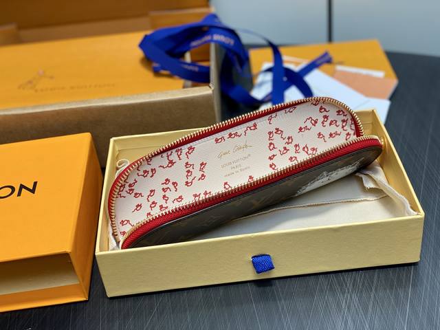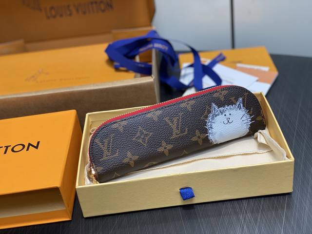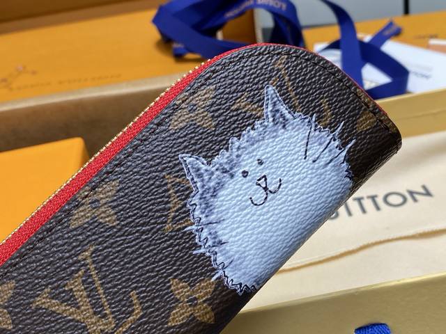Original Quality Gi1396 Monogram Upgraded Cat Pencil Case, New Seasonal Charlotte Pencil Case. This Charlotte pencil case reimagines a classic design with whimsical illustrations by artist Grace Coddington. A smiling cat pattern emerges on the Monogram coated canvas, while the leather lining depicts a lively scene of cat and mouse playing. Metal zippers and bright edges add elegant details. 7 x 2 x 20 cm (