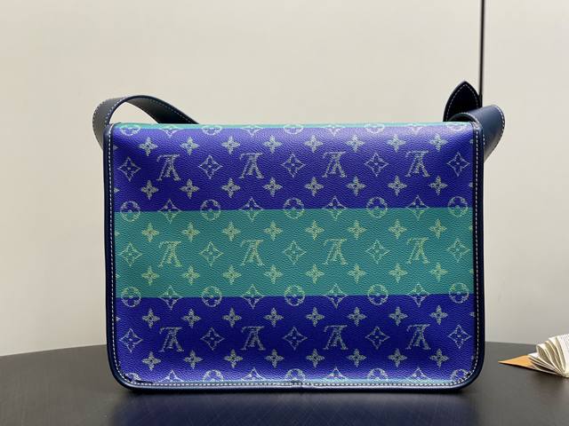 Original Quality M15187 Blue Gradient Men's Satchel Messenger Bag. This Satchel messenger bag features Monogram Heritage coated canvas accented with distressed metal buckles. Its spacious design incorporates a fabric lining, making it suitable for both business and casual occasions. An interior-lined laptop compartment and front pocket ensure neat organization. The Marquelvuitton D