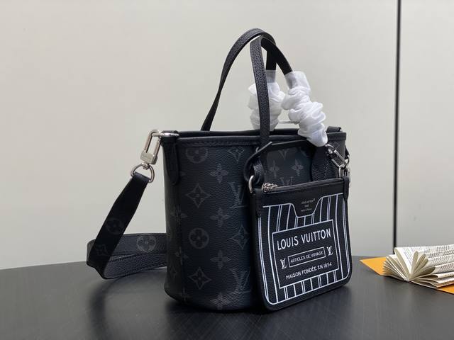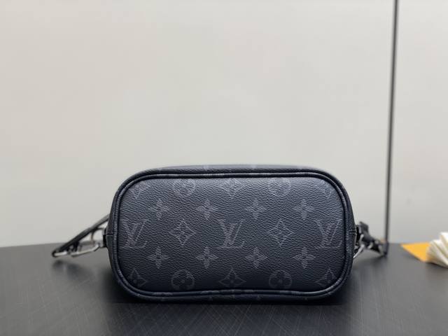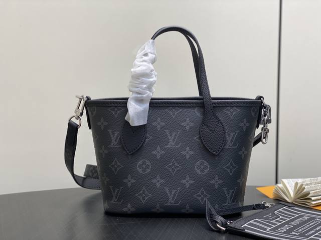 Original Quality M15210 Black Floral Reversible Shopping Bag Neverfull Bandouliere Inside Out BB. This season's reversible version of the classic design features the iconic Monogram canvas and grained leather on opposite sides. The detachable zippered pouch can be used alone or hung externally. A detachable shoulder strap allows for crossbody wear, and striking metal hardware adds a touch of sophistication. Dimensions: 26.5 x 16.5 x 11 cm (Length x Height x Width).