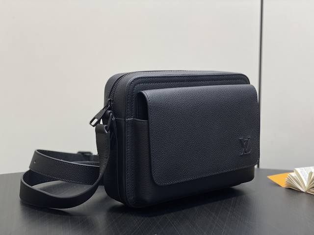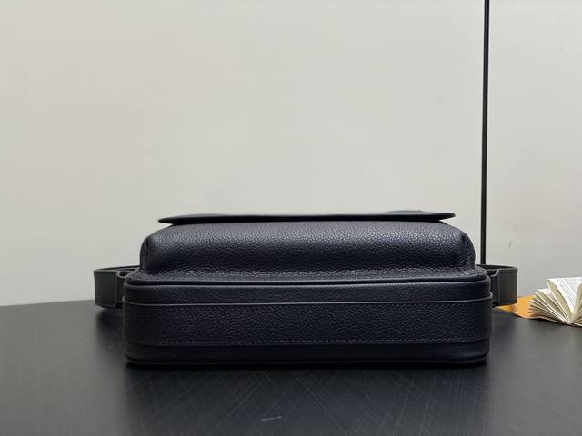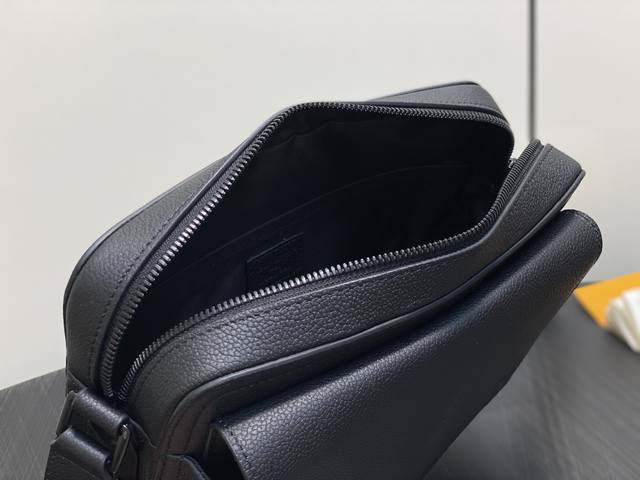 Original Quality M15265 Black Full Leather Men's Boarding Messenger Bag. This messenger bag is crafted from lightweight and durable waxed cowhide leather. Its compact design features interior and exterior slip pockets for easy storage of an 8.3-inch tablet. An adjustable leather shoulder strap enhances comfort. Dimensions: 24