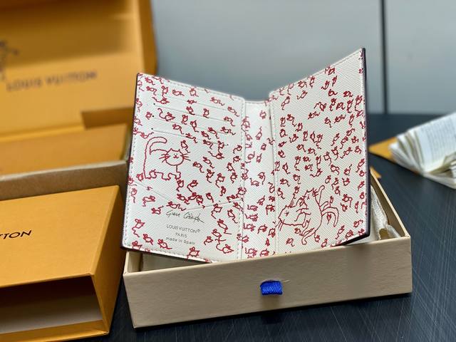 Original Quality M25753 Monogram Cat Upgraded Passport Holder/Cover - New Seasonal Passport Holder. This passport holder is made of Monogram canvas and features hand-drawn illustrations by Grace Coddington, former Creative Director of American Vogue, in the LV Travels With collection, adding another fun option for pet lovers. Credit card compartment, slip pocket, and flap pocket highlight functionality, making it easy to use for weekend getaways or long vacations. 14 x 2.5 x 10 cm.