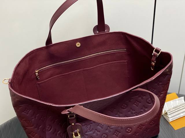 Original Quality M25860 Burgundy Full Leather Embossed Shopping Bag, All In One Medium Handbag M25888 Burgundy M25860 Black. This All In One medium handbag, as its name suggests, can be flexibly transformed into a tote bag or hobo bag, making it an excellent choice for office commutes and weekend getaways. The Monogram Empreinte leather body is paired with a metal LV padlock and iconic branding, while the handle design is inspired by traditional hard-sided trunks. Its lightweight and flexible construction can accommodate a laptop and other everyday essentials. 30.5 X 17 X 56.5 cm (H x W x Length). This bag is too large to come with a box.