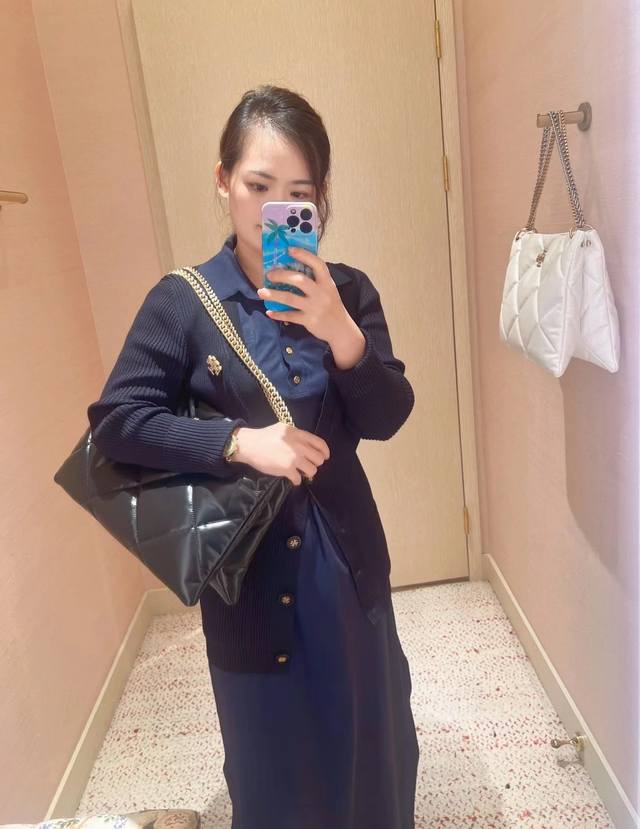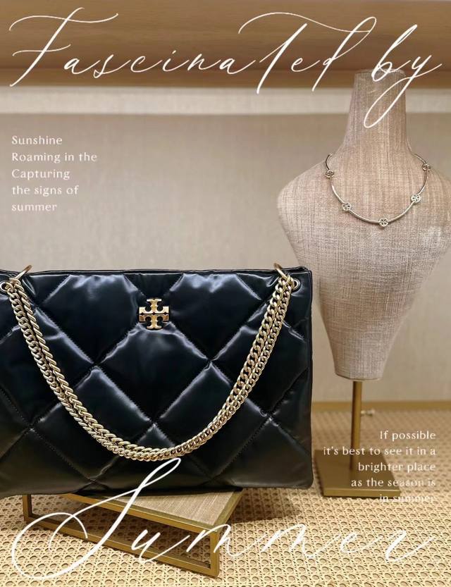 Kira quilted tote bag, soft and durable material, quilted diamond pattern for a three-dimensional and fluffy look. Soft texture and three-dimensional cut perfectly interpret the classic silhouette, paired with slanted double T logo trim for a more fashionable look. Adjustable folding chain strap for shoulder or crossbody wear.