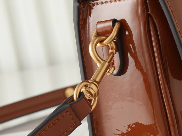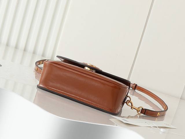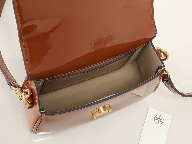 Original quality, new tofu bag series, new product details to note: Tory Burch's new patent leather Robinson series motorcycle bag, a classic and versatile style suitable for everyday use. Made of glossy patent leather with smooth, rounded edges, suede lining, brass hardware, and a magnetic snap closure on the flap. Can be carried by hand, over the shoulder, or crossbody. 19X14X6Cm.