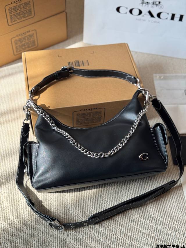 Original single-piece cowhide Coach Pocket Juliet, new workwear style Juliet handbag. This oversized hobo-style handbag retains elegant lines while also catering to the street style aesthetic desired by today's young generation. Both shoulder straps are adjustable, making it a versatile choice. Size: 32 x 17 cm.