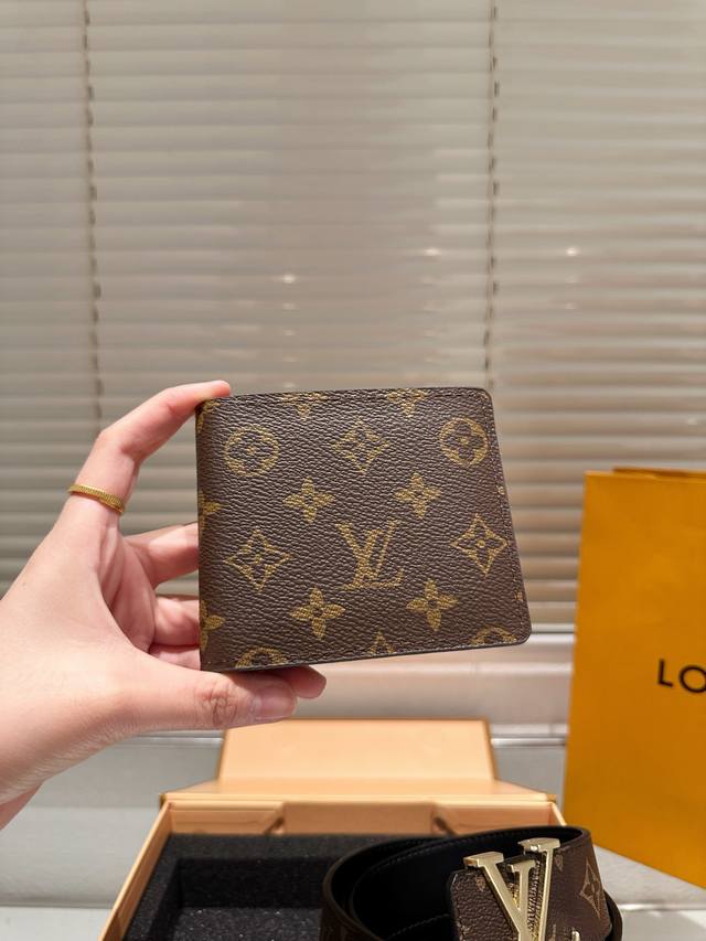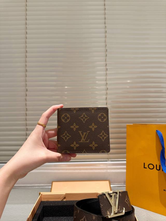 / Original wallet and belt with gift box, high-quality replica! LV cowhide leather