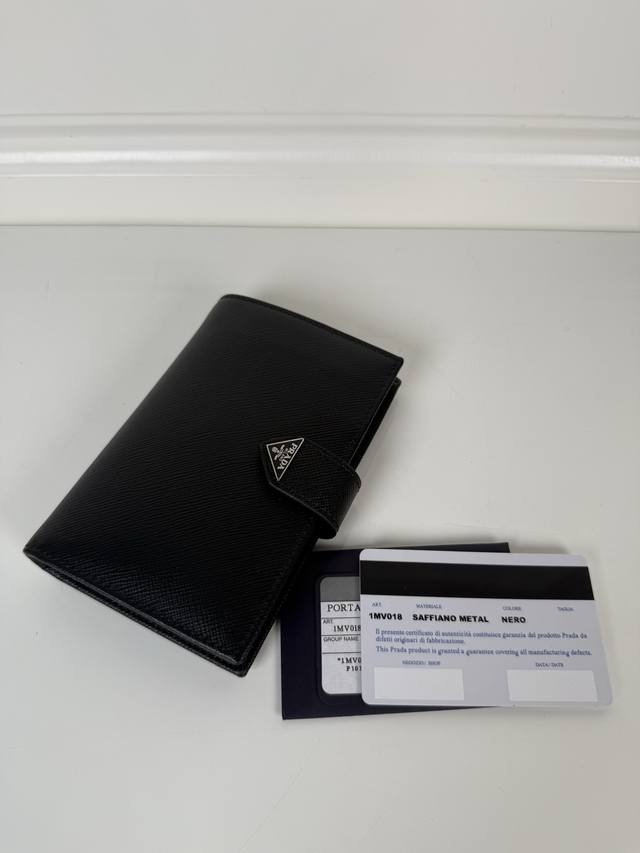 P brand unisex wallet + passport holder, essential for business trips and travel, model: 1Mv018, made of imported cross-grain cowhide, 3 card slots, 3 inner ticket pockets, 1 document compartment, size: 9.5*14Cm, 175 steel stamp, original quality as shown in the picture.