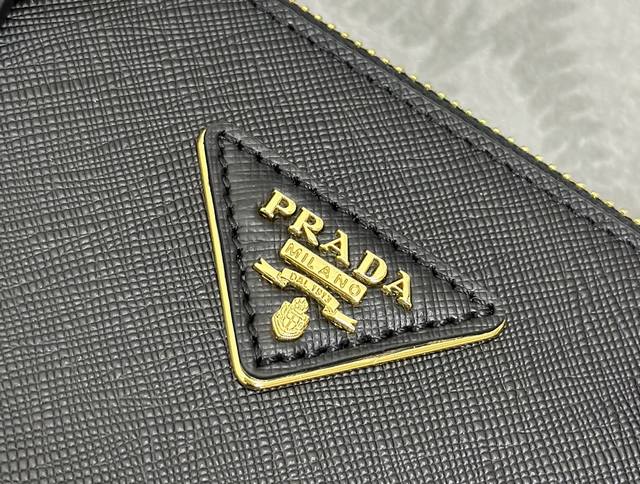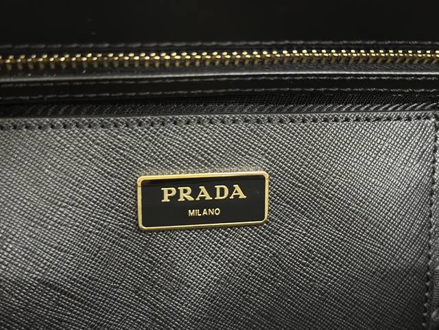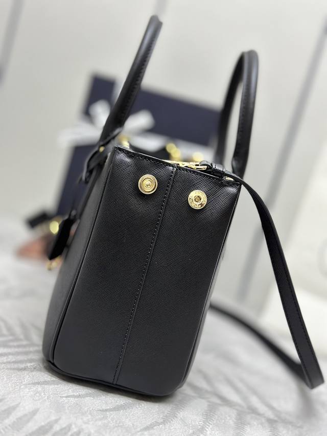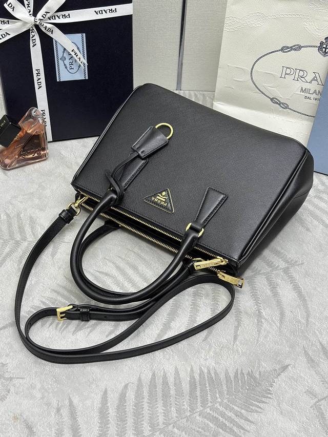 P Medium-sized Popular 28cm Killer Bag, Saffiano Leather, Double Handles, Detachable and Adjustable Leather Shoulder Strap, Gold-plated Hardware, Triangular Leather with Metal Engraved Logo, Side Snap Closure, Two Zippered Exterior Pockets, Three Interior Pockets, including One Zippered Pocket, Prad Logo Lining. Model: 1Ba863, Dimensions: 28
