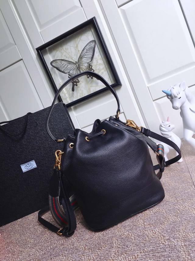 Pixnet has released another hot-selling bucket bag, 1Be018. This latest and most popular bucket bag is made of imported calfskin deerskin leather. It features two interchangeable shoulder straps, a detachable and adjustable multicolored fabric shoulder strap with leather shoulder pads, a metal engraved logo, a leather drawstring at the top, and a logo lining. The interior has a leather pocket. This spacious and stylish bucket bag measures 21cm (L) x 25cm (H) x 15cm (D).