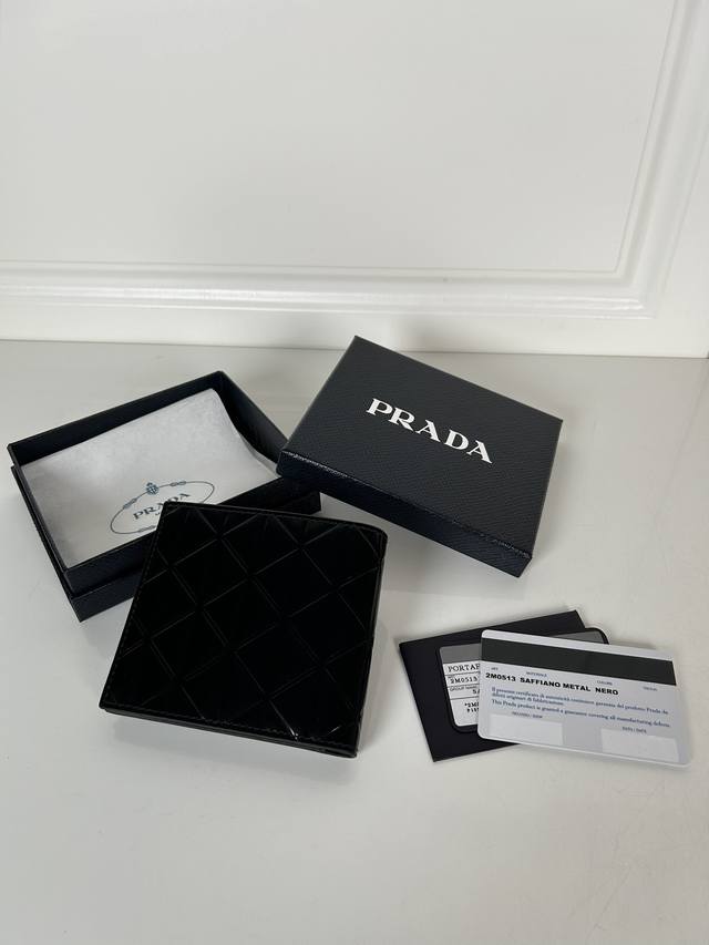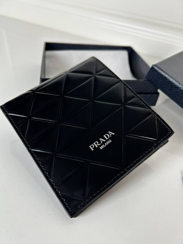 Pixnet men's short wallet, black patent leather with embossed pattern, model 513. Made of patent leather with embossed pattern, eight card slots, length 11cm, height 9.5cm, 175mm steel stamp, meticulous and neat workmanship as shown in the picture.