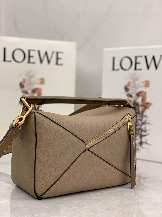 Popular Sand-Colored Puzzle Bag. Made of imported pique calfskin, featuring a unique cut and plain weave stitching, its distinctive pebbled leather texture adds a unique charm to the overall feel. Size: Small 24*16*10Cm. (
