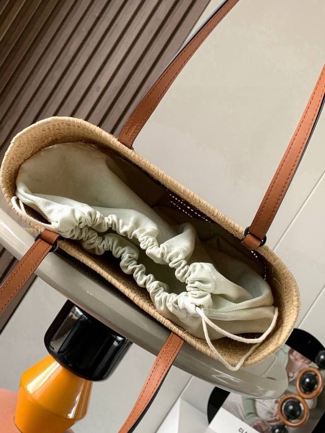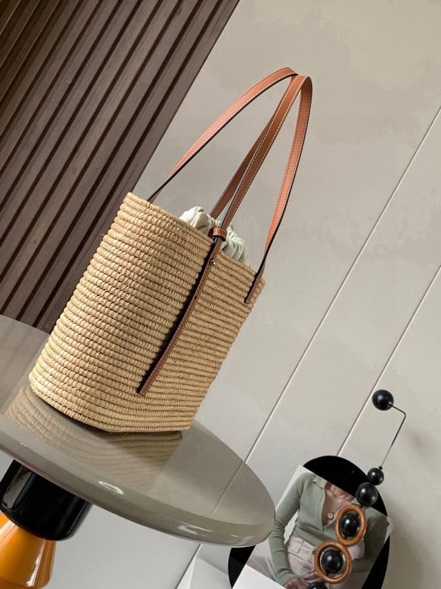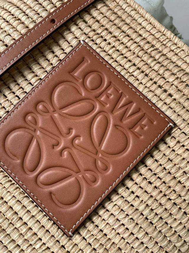 Popular Small Raffia Fiber Wagyu Leather Square Basket Handbag. This compact square basket handbag is made of pure raffia woven Wagyu leather. It has a simple and elegant design and is very lightweight. The simple yet sophisticated style adds a touch of Korean chic. It's perfect for travel and photoshoots. The strap length is adjustable, making it easy to carry for outings or commutes. The Square Basket is definitely a must-have for beach vacations. For a casual style, you need a bag. This bag can fit not only water bottles but also small umbrellas. The simple design with the L0Ewe logo makes it suitable for women of all ages. Material: Natural raffia Size: 27-20-10cm Style Number: 8001 Color: Brown