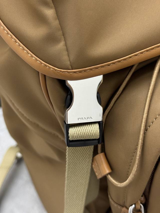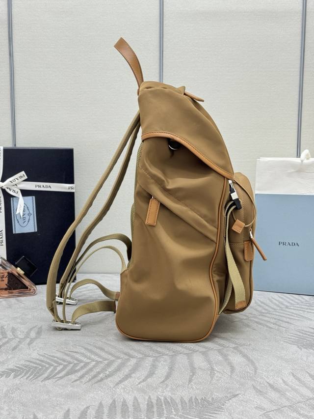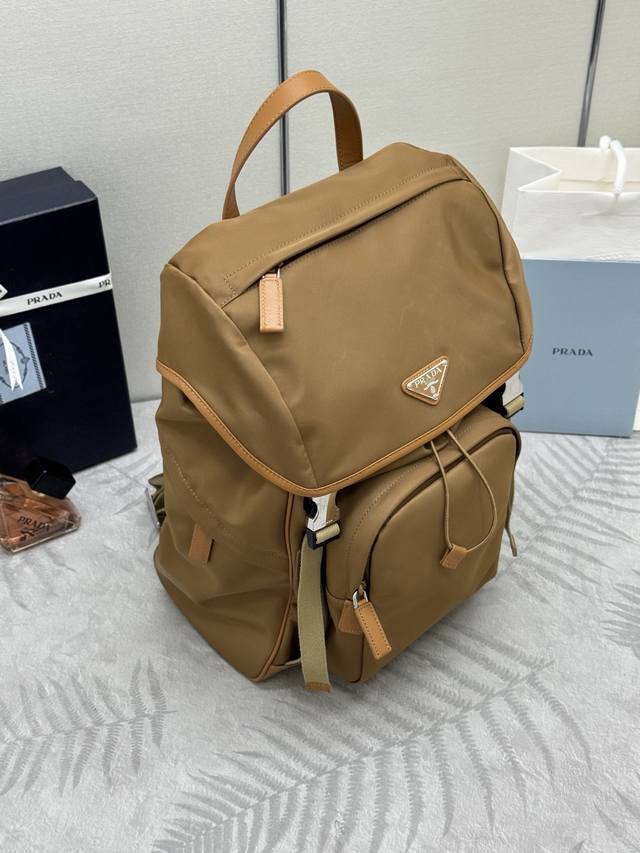Prada New Parachute Backpack with Triangular Enamel Nameplate, Adjustable Nylon Shoulder Straps 2Vz135, Made with Imported Parachute Fabric and Imported Stainless Steel Hardware. This sporty parachute backpack features practical pockets on the front and sides, as well as four highly functional D-rings for attaching various accessories! It also has two interior pockets, one with a zipper. The stitching and workmanship are perfect, comparable to the genuine product. Stylish, lightweight, unisex. Dimensions: Length 27cm * Height 45cm * Width 17cm. This size is too large and does not include packaging.