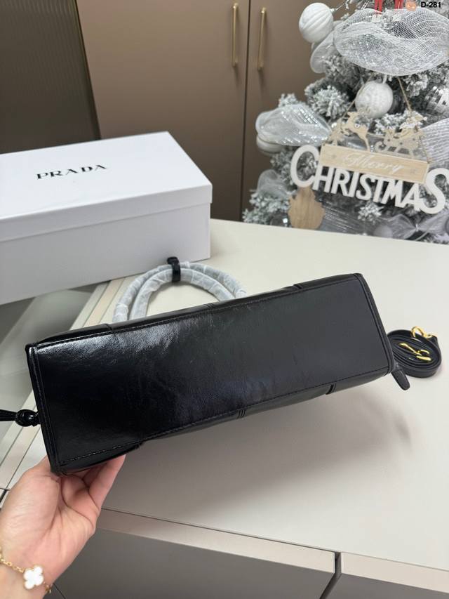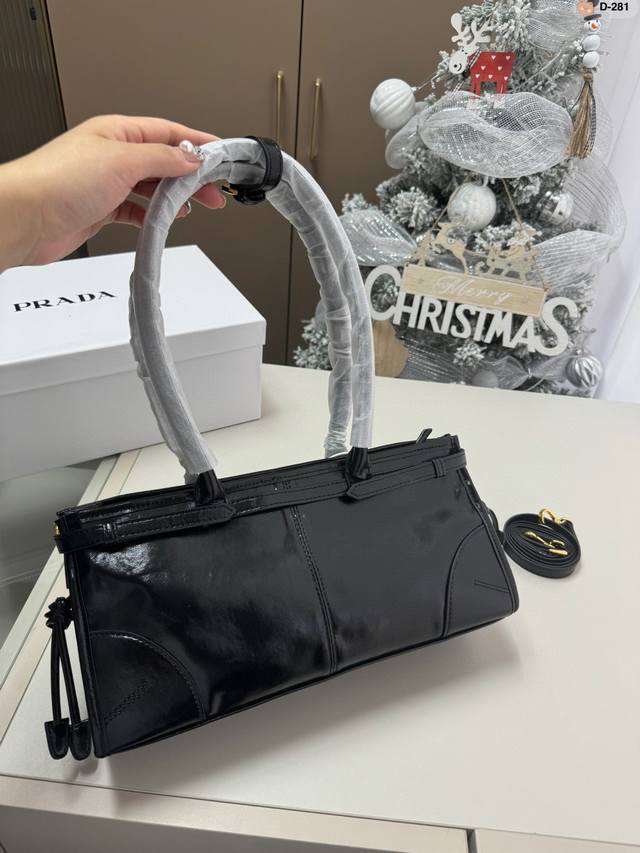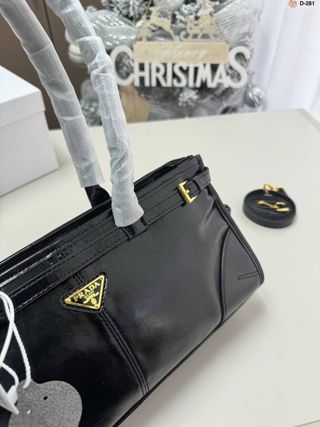 / Prada Soft Lux Waxed Leather Hobo Handbag, Shoulder Bag, Can Be Worn Crossbody D