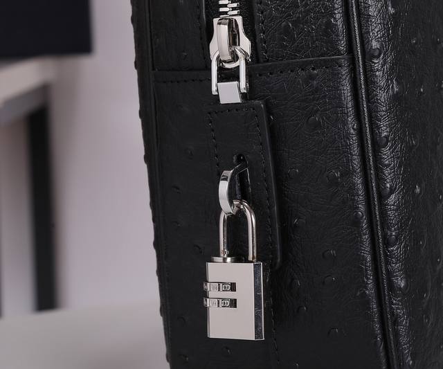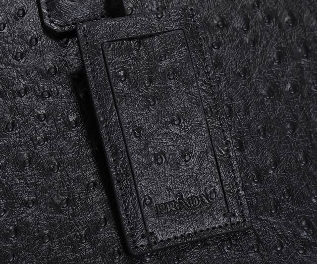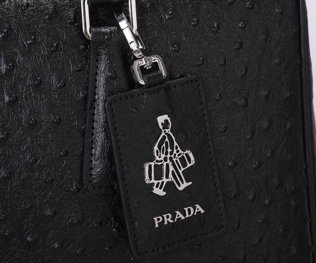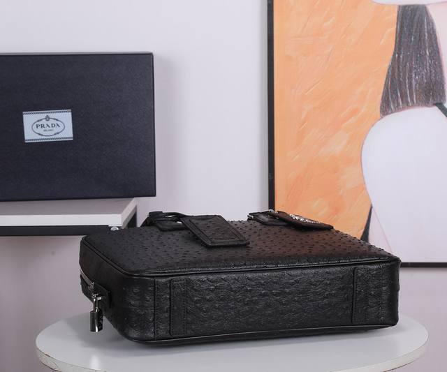 Prada's latest hot-selling model: P10420 Men's briefcase, genuine factory quality! 175 production code + Italian made mark. European factory-supplied ostrich-patterned cowhide! Original factory hardware and logo! Top-notch craftsmanship, a must-have for the modern man! Impeccable! Real product photos, black! Dimensions: W36 H28 D7.5Cm