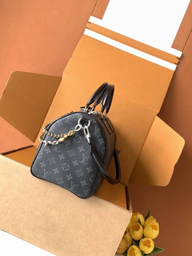 Premium All-Steel Imported Leather M 2 This Speedy Soft 30 handbag is from the LVski collection, refreshing the classic design with Monogram Eclipse canvas. Double chains, a pleated leather key pouch, and the signature padlock highlight the exquisite details. The perfect size can accommodate a tablet and other everyday essentials. 30X21X17 cm Length X Height X Width