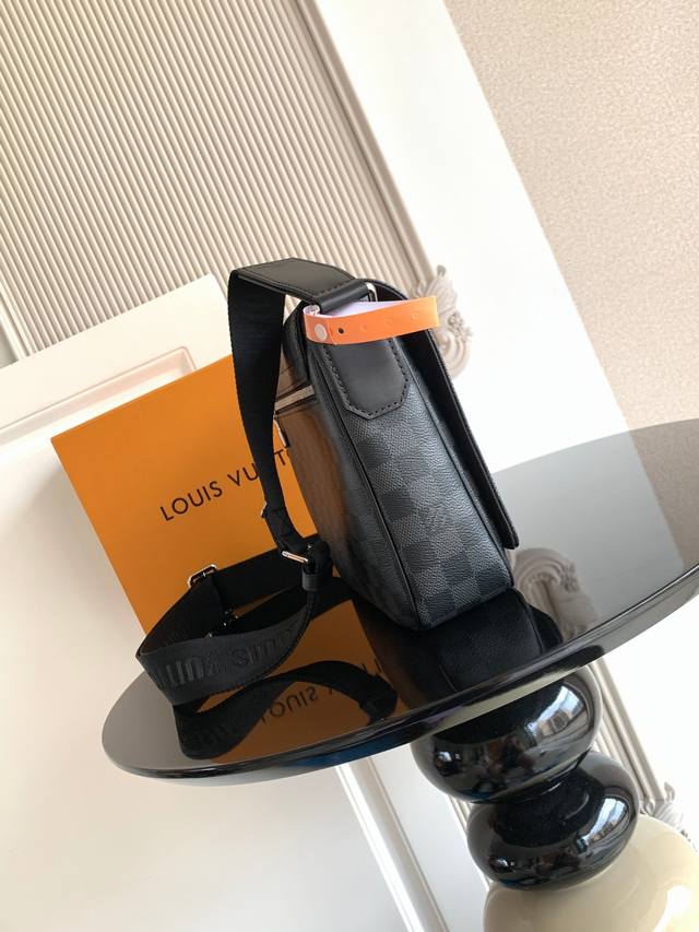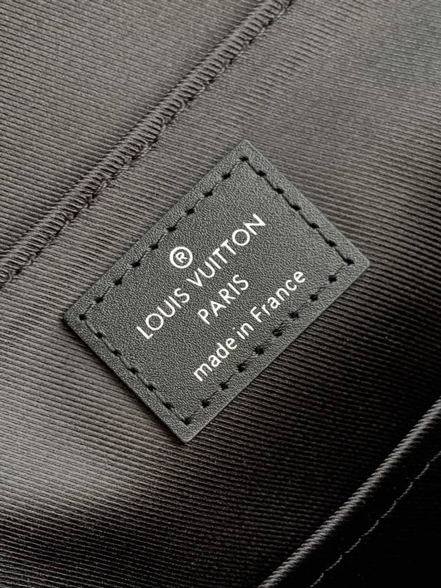 This small messenger bag exudes a dashing charm through its canvas. The Louis Vuitton logo and lettering in the lower left corner highlight the brand's elements. A zippered exterior pocket on the back provides easy access, and the adjustable shoulder strap allows for comfortable carrying.