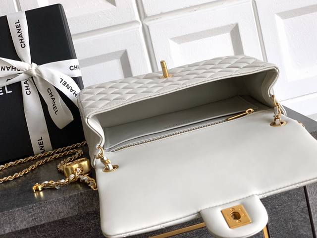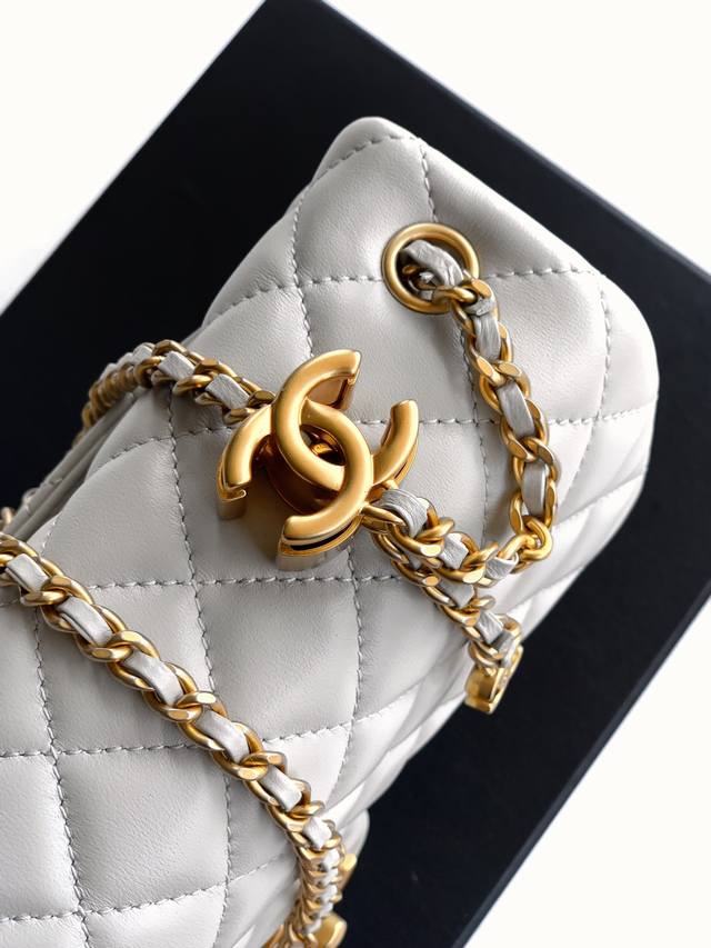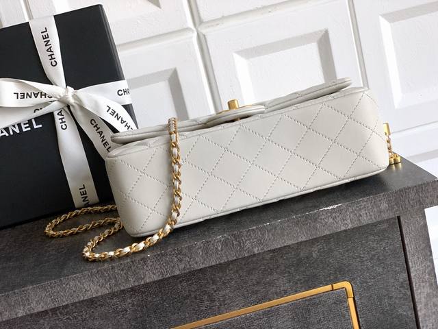 Premium Old Factory Grey-White Large Cf 23Cm Ohanel 25B Double C Adjustable Buckle Square Fat Bag, a retro style double logo chain bag with irresistible charm and stunning looks! A long-time Chanel bestseller, this bag features a vintage-inspired glossy lambskin leather. It boasts the soft, supple texture of lambskin while retaining the durability and easy care of cowhide. The distressed vintage hardware, smooth glossy leather, and delicate embellishments on the double adjustable logos at both ends of the chain allow for various styling options. The square shape makes it suitable for shoulder, crossbody, or hand carry. Dimensions: 23.5X14.5X7Cm ~ Mini 20X13X7Cm ~ Square Fat: 18X13.5X7Cm ~