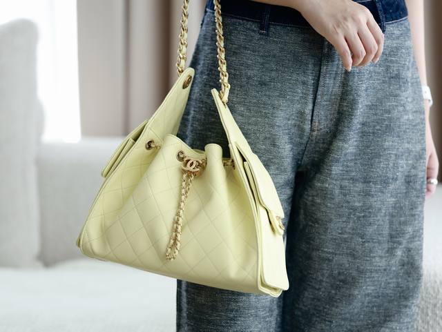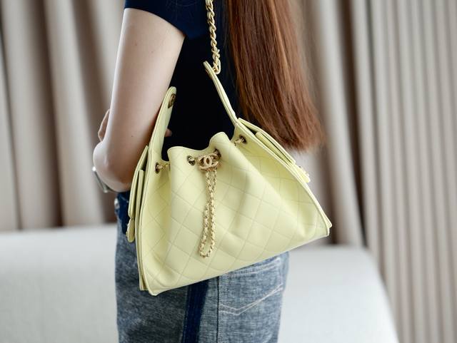 Premium Original Chip Version Chanel 25 Series Chick Yellow Leather with Grain Embossed Texture. Not only is it durable and wear-resistant, but you can also feel the delicate texture with a gentle touch. Paired with shimmering gold metal hardware, it blends luxury and casualness, exuding a high-end feel.