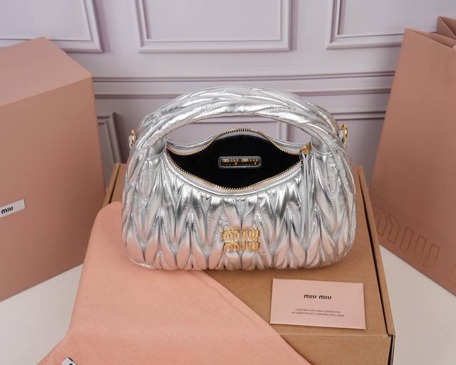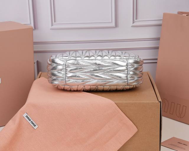 Miuwander Handbag, made of imported lambskin with the brand's signature Matelasse texture embroidery, vintage matte hardware, utilizing rounded curves to retain its playful feel. The bag has a structured and stylish overall shape, full of personality, versatile enough to be both sweet and edgy, with a considerable capacity. Almost every fashion blogger owns one. Dimensions: 20