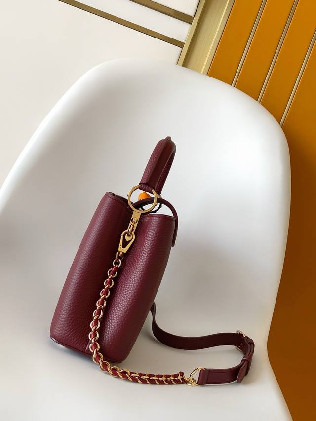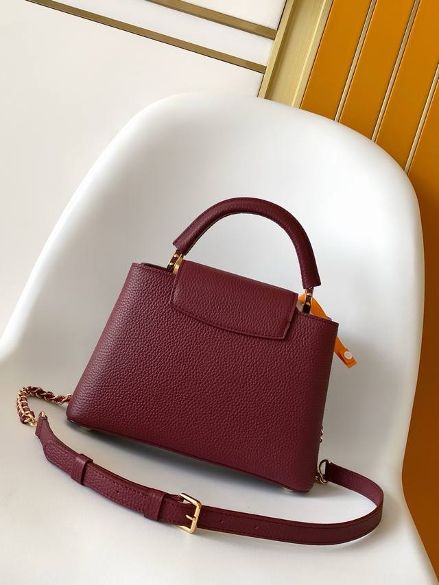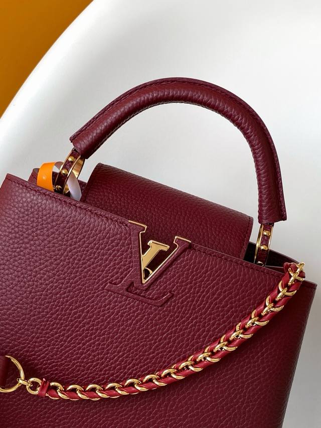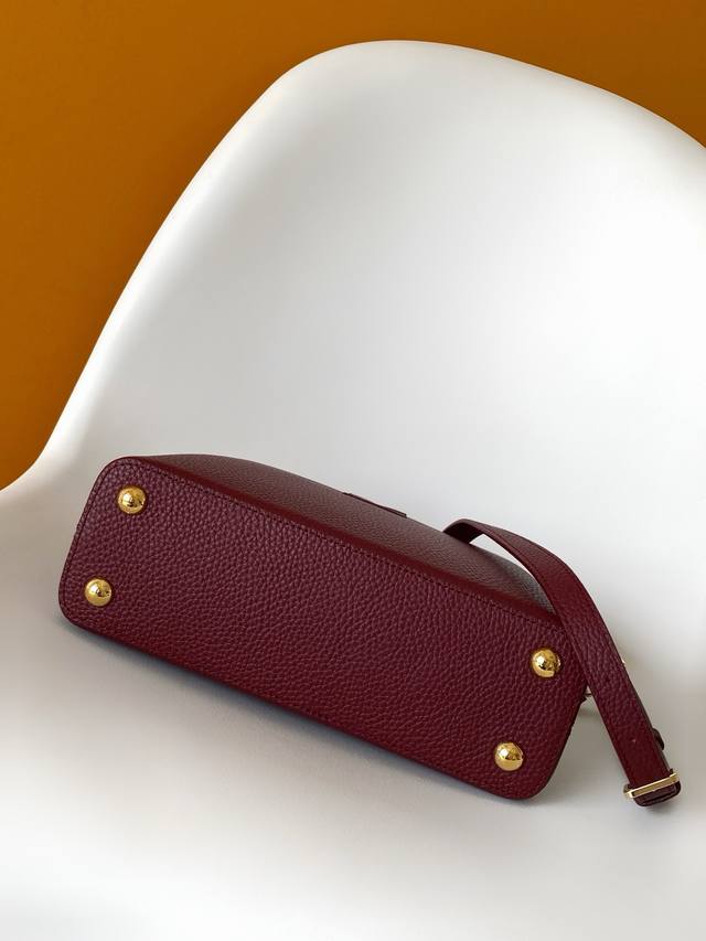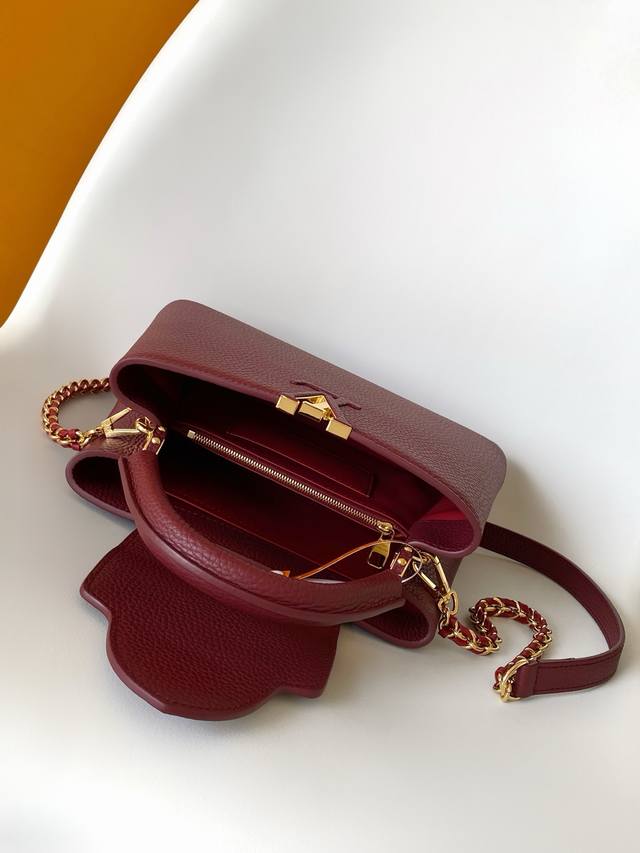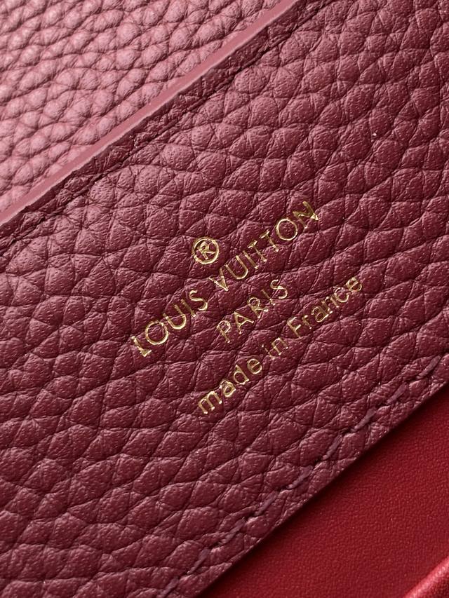 Premium Original Leather M25893 Capucines mini handbag features an exquisite Monogram flower design on the handle, delicately rendering the LV logo with a three-dimensional effect, injecting dazzling brilliance into the feminine design. Full-grain Taurillon leather creates a sleek silhouette, accommodating a smartphone, a short wallet, and other small essentials. 21.0 x 14.0 x 8.0 cm (Length x Height x Width)