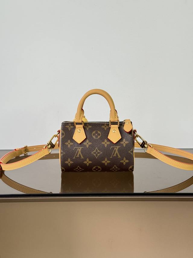 Premium Original Nano Speedy Handbag (Model: M81085, Monogram Canvas 163 Dynamic Chip Version) Material: Grade A All-Steel Hardware, Imported Original Fabric Dimensions: 16 x 119 cm