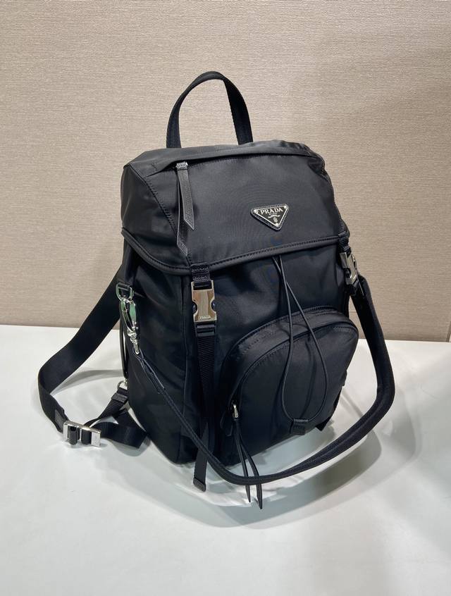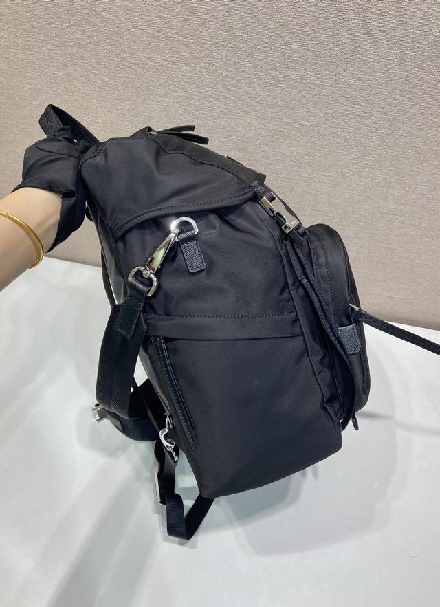 This modern and practical backpack is made of Re-Nylon, boasting a spacious yet lightweight silhouette and technical details. The design combines outdoor spirit with versatile urban style, featuring detachable short shoulder straps, a flap and side zippered pockets with metal hardware, ample capacity, and is a timeless bestseller. Unisex. Grab yours now
