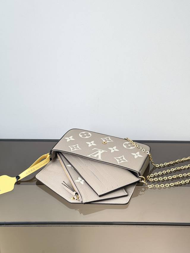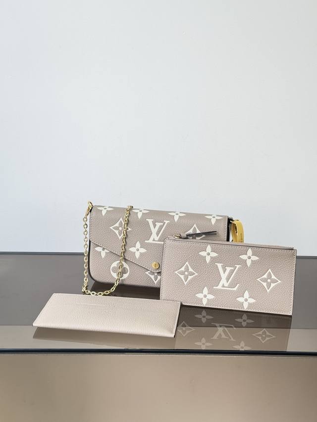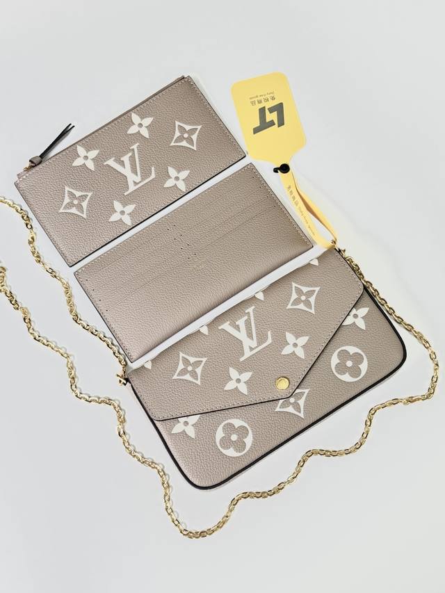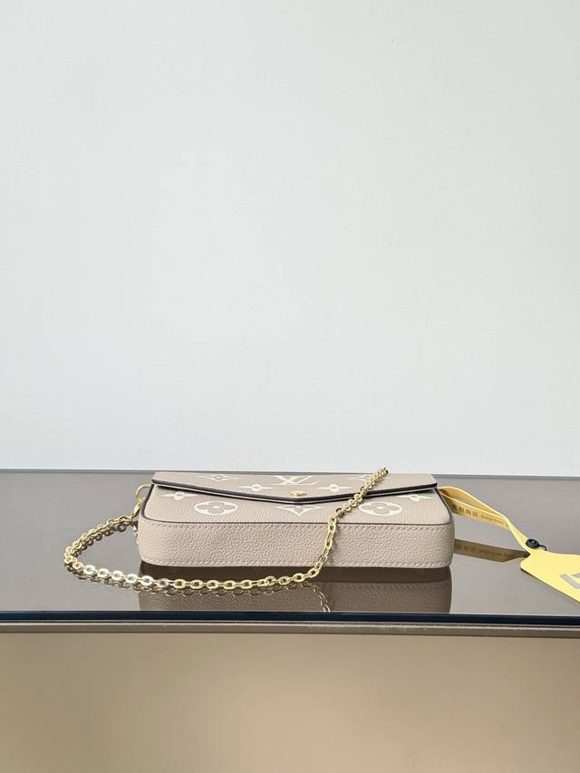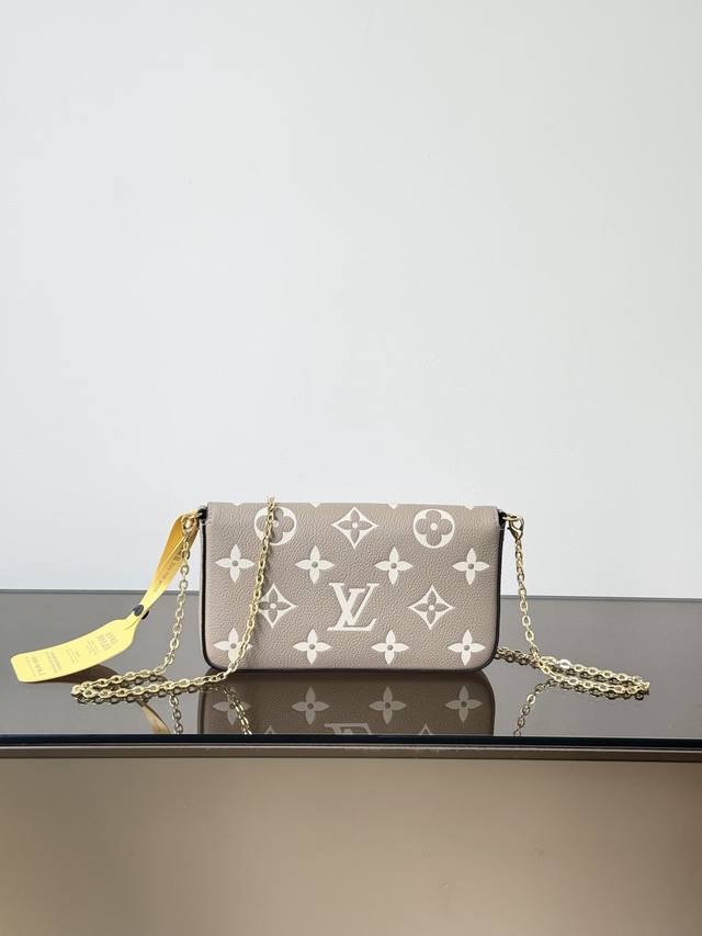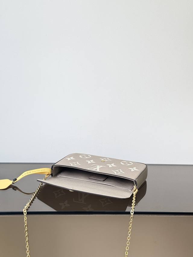 Premium Original Pochette Felicie Chain Bag, Model: M82610, Elephant Grey, 163cm Dynamic Chip Version, Material: Grade A All-Steel Hardware, Imported Original Leather, Size: 21123cm