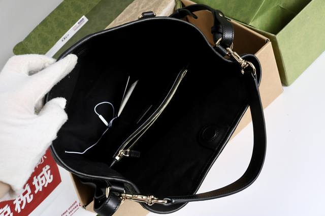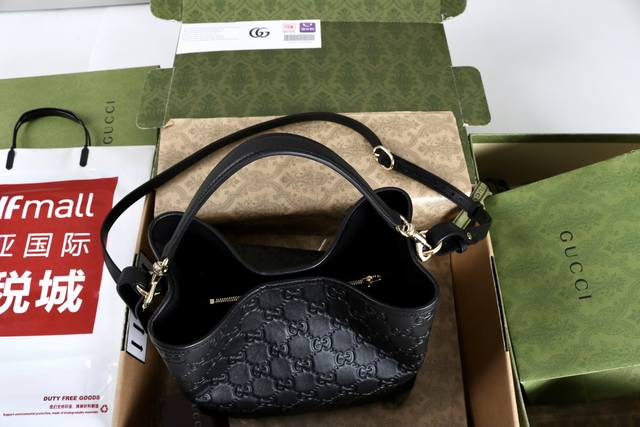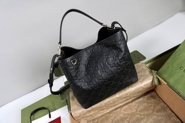 Introduction: The Gg Emblem series reinterprets the brand's timeless elegance and exquisite craftsmanship. This bucket bag features a webbing cotton lining and an internal compartment for exceptional practicality.