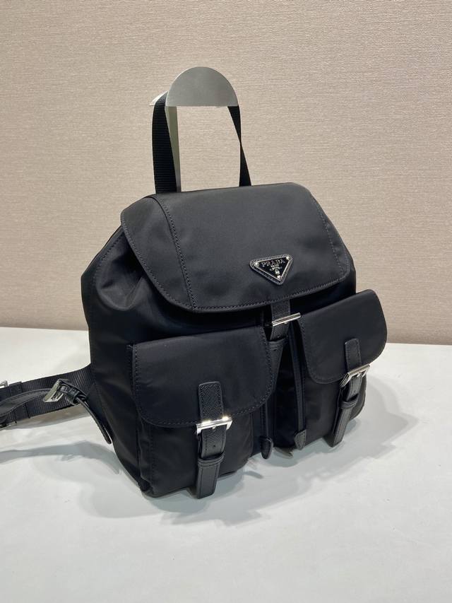 P's classic backpack, upgraded small size 1Bz677, top-quality small size, made with imported parachute fabric + cross-grain cowhide + top-grade hardware, lightweight and practical, stylish and timeless, grab yours now! Dimensions: 28cm (L) x 23.5cm (H) x 12cm (
