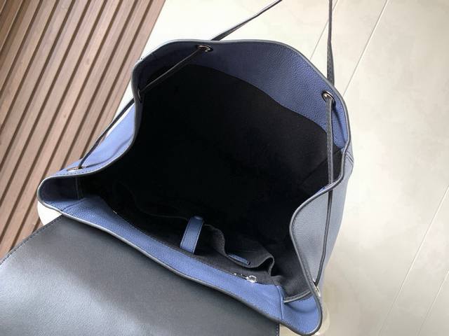 Puzzle Backpack - Soft Grained Calfskin Military Backpack. This spacious and versatile backpack is crafted from soft grained calfskin and classic calfskin, offering exceptional comfort. It's durable and won't strain your shoulders. The design features Loewe's classic geometric design, easily recognizable without a prominent logo