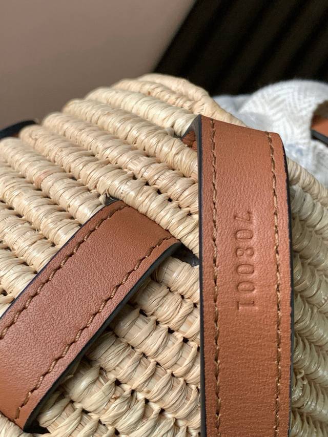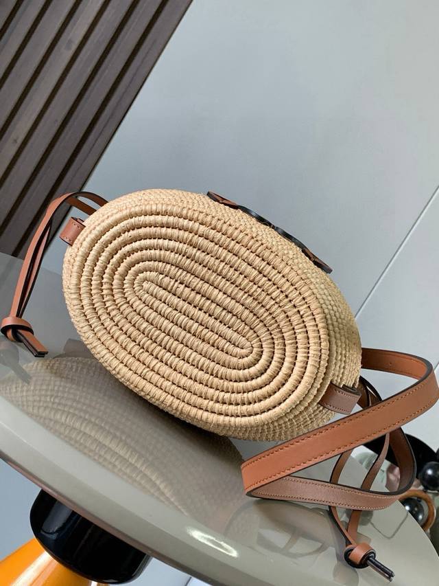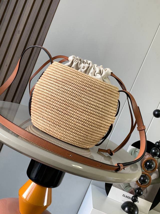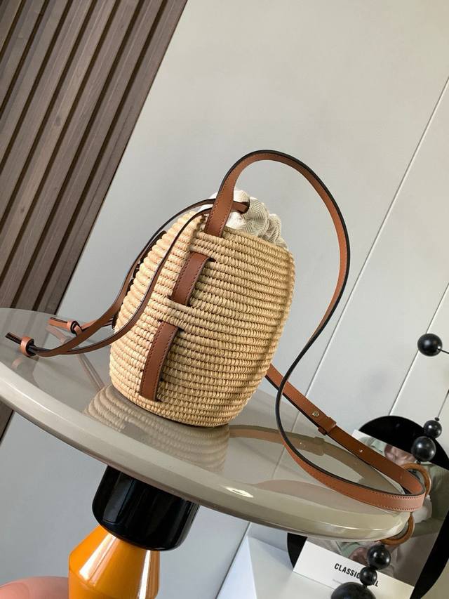 Raffia Fiber and Cowhide Leather Honeycomb Basket/Lantern Bag Handbag woven bag with a cowhide shoulder strap that runs through the entire honeycomb shape. This version is made of raffia fiber and cowhide leather and features an internal drawstring pouch. The front is decorated with cowhide Anagram embroidery. Unlike previous straw bags that can be worn over the shoulder, this small honeycomb bag can be worn crossbody or over the shoulder. It has a large capacity and can easily fit your phone, lipstick, powder compact, tissues, car keys, cardholder, and even power bank, hand cream, and other personal items. It has a non-removable inner pouch for easier organization. The drawstring closure can keep small items inside from falling out. It looks so good on! The relaxed and casual high-end feel easily covers all seasons. Size: 22-22-12cm Style Number: 8002 Color: Brown