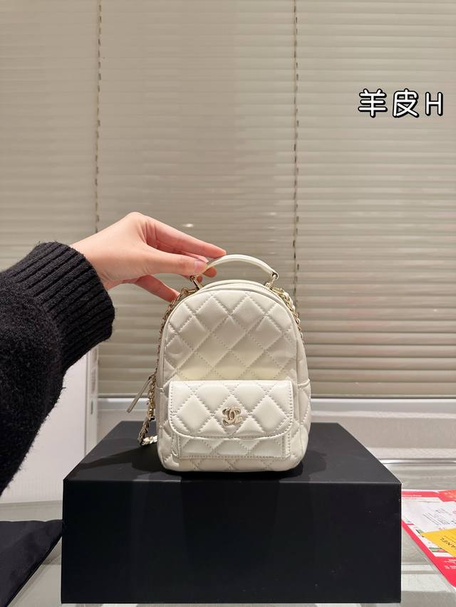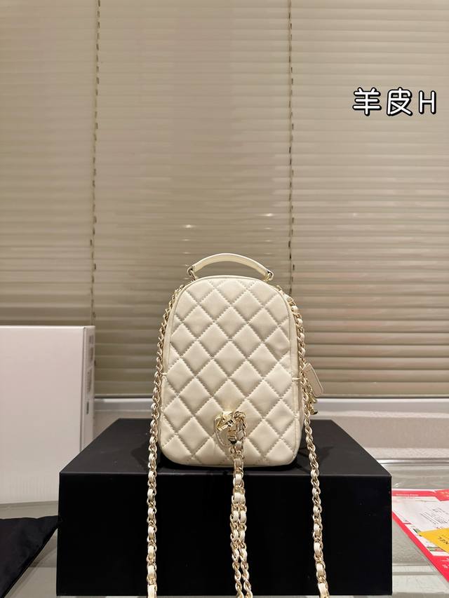 Replica Lambskin Chanel 24C Mini Backpack. Made of black pebbled calfskin with a gold double C logo, this classic and durable backpack features quilted stitching, a top handle, and a detachable shoulder strap. It can be carried by hand, over the shoulder, or crossbody