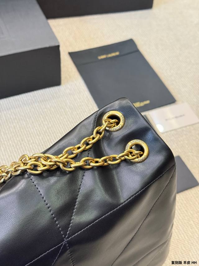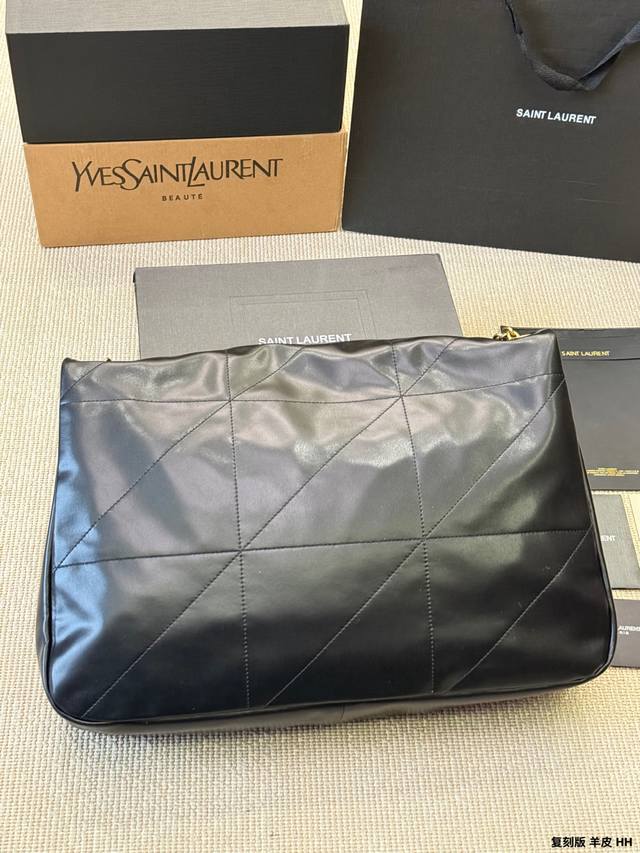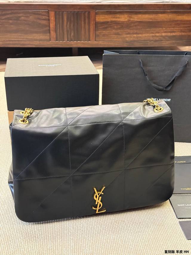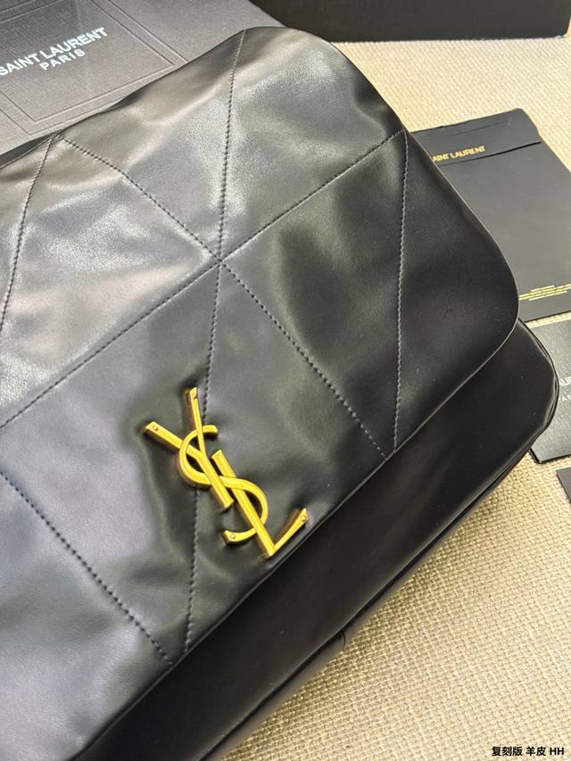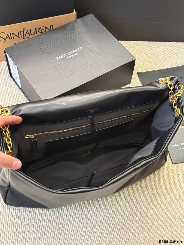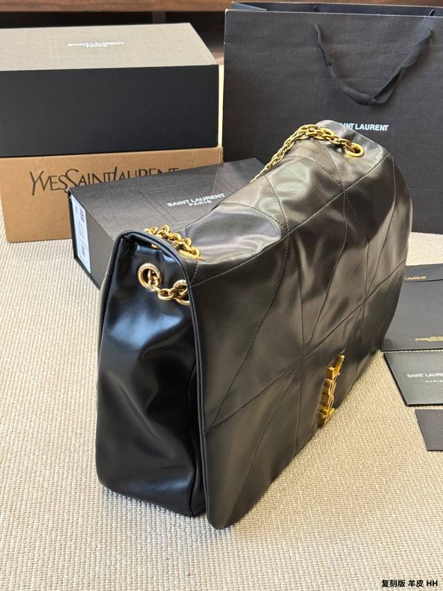 Replica YSL Jamie 4.3 Lambskin Chain Bag. This YSL Jamie 4.3 chain bag features black lambskin and a metal chain, a simple yet retro style, and geometric patchwork lines for a highly fashionable look. The YSL logo on the front is easily recognizable. It has a large capacity, suitable for both commuting and everyday wear, with a well-designed interior. Practical and stylish! The lambskin material is soft and durable. The chain shoulder strap can be worn over the shoulder or crossbody, making it versatile and flattering for all body types. It's a classic and popular YSL design, a must-have for fashionistas! Size: 40 x 20 cm.