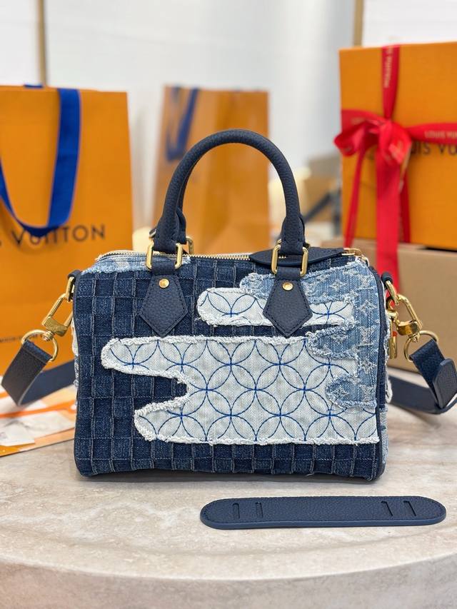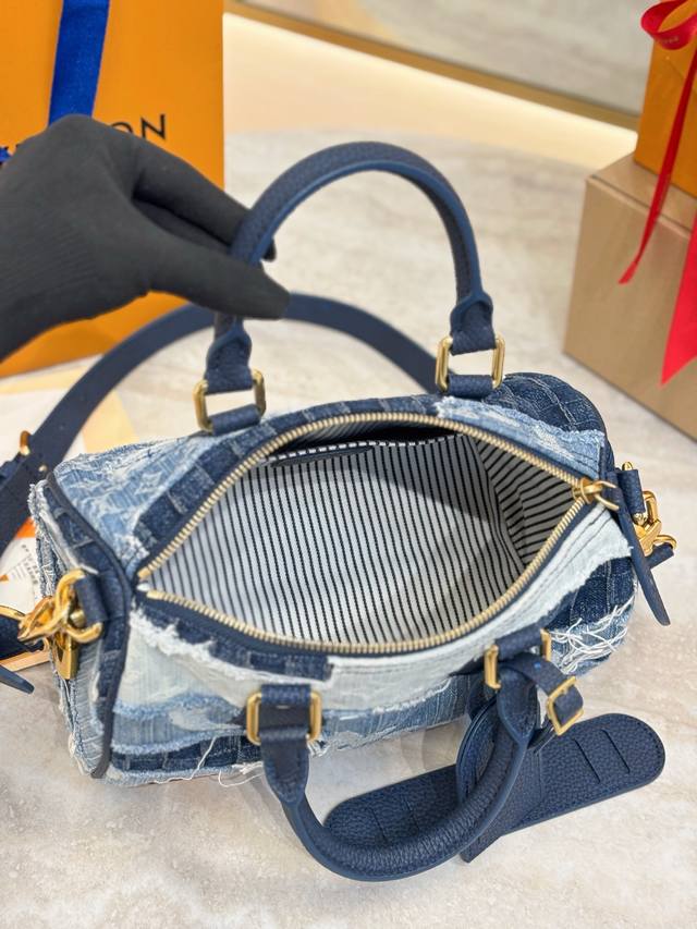 The LV Nano Speedy black monogram handbag features Monogram Eclipse coated canva