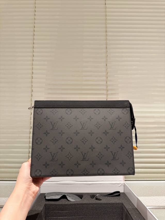 LV handbag, sunglasses charm, and toiletry bag
