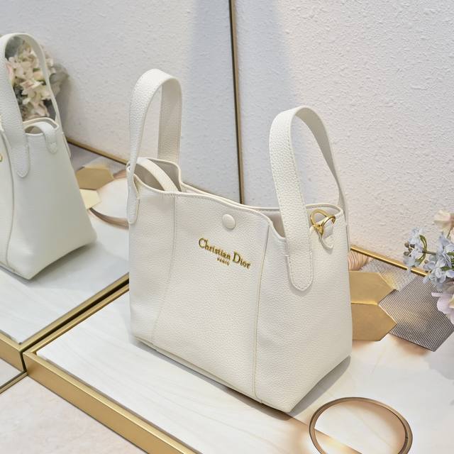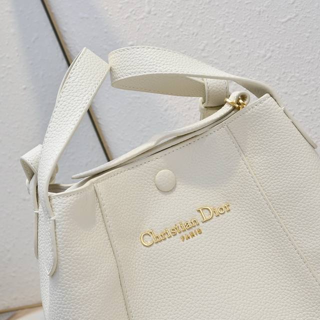 This Signature bucket bag is a new addition to the Spring/Summer 2025 collection, highlighting a soft silhouette and versatile design. Crafted from black calfskin and other materials, it features smooth calfskin details in the same tone, and a vintage gold-plated Christian Dior Paris logo on the front. The spacious compartments with snap and loop closures securely hold various everyday essentials, while the slip pockets add a touch of sophistication. It comes with a top leather handle and an adjustable, detachable shoulder strap, allowing for easy hand-carrying, shoulder-carrying, or crossbody wear.