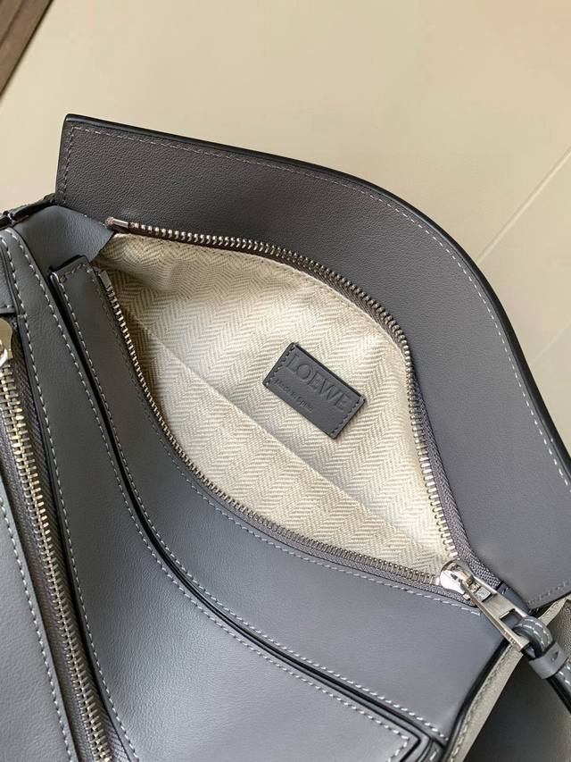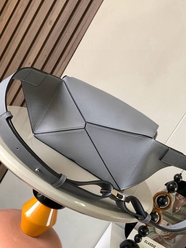 Small Classic Calfskin Puzzle Waist Bag. The rectangular shape and precise cutting techniques create Puzzle's unique geometric lines. This small waist bag is made of classic calfskin leather, which is soft and lightweight. Its understated yet distinctive design makes it suitable for both business and casual occasions. Later, I discovered a Puzzle waist bag. Compared to the classic Puzzle, it's relatively niche. This waist bag removes the classic Puzzle's handle and moves the back zippered pocket to the front. The waist belt is also a non-removable buckle. While retaining the classic Puzzle's casual and artistic basic shape, it adds a cool, mechanical feel, remaining classic and versatile. It not only has a considerable capacity but also improves body proportions. It can be worn over the shoulder or crossbody, with an adjustable shoulder strap and a metal buckle closure. Size: 24cm