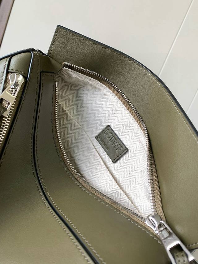 Small Classic Calfskin Puzzle Waist Bag. The rectangular shape and precise cutting techniques create Puzzle's unique geometric lines. This small waist bag is made of classic calfskin leather, which is soft and lightweight. Its understated yet distinctive design makes it suitable for both business and casual occasions. Later, I discovered a Puzzle waist bag. Compared to the classic Puzzle, it's relatively niche. This waist bag removes the classic Puzzle's handle and moves the back zippered pocket to the front. The waist belt is also a non-removable buckle. While retaining the classic Puzzle's casual and artistic basic shape, it adds a cool, mechanical feel, remaining classic and versatile. It not only has a considerable capacity but also improves body proportions. It can be worn over the shoulder or crossbody, with an adjustable shoulder strap and a metal buckle closure. Size: 24cm