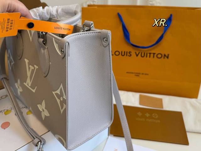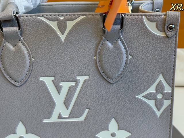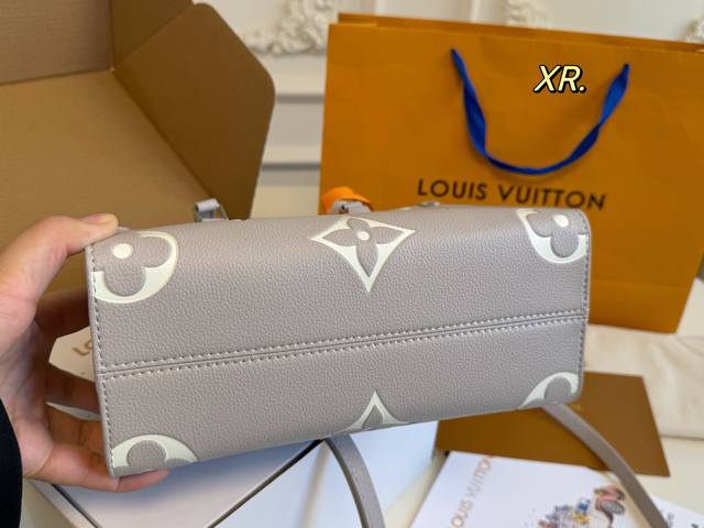 M46653 This Onthego tote bag blends Giant Monogram and Monogram Reverse canvas,