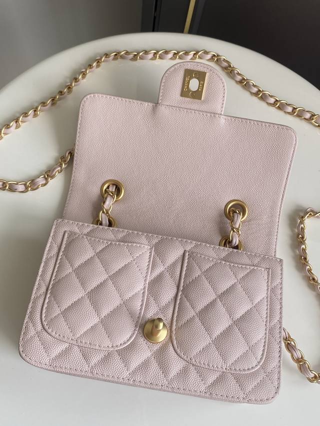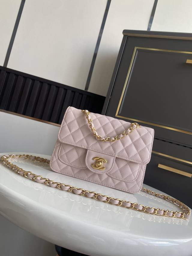 Black Caviar Ghw. Very similar to the Mini CF in its diamond quilted design and double C logo, making it highly recognizable! The chain is adjustable, so it can be carried by hand, over the shoulder, or crossbody, making it suitable for everyday commutes or formal occasions. It has a moderate capacity, easily holding a phone, lipstick, and power bank