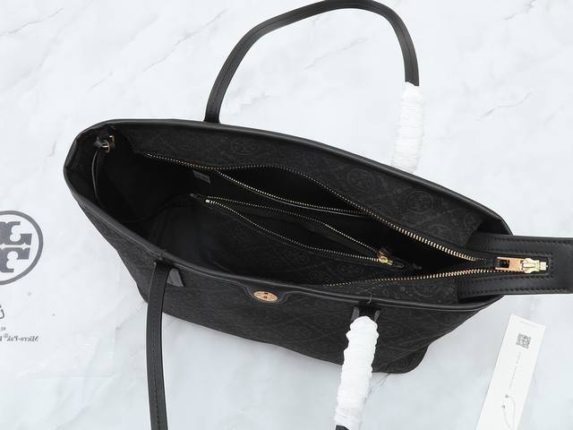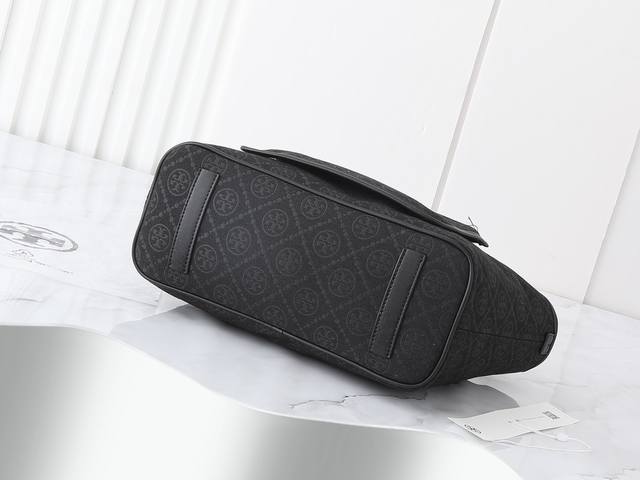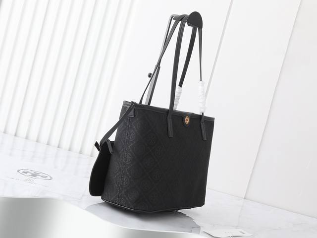 Small Tory Burch Monogram Shopping Bag. The Monogram pattern, jacquard double T logo, and flowing lines create a sophisticated yet gentle look. Simple, clean, and timeless, this tote bag is crafted from select woven jacquard fabric. Small size: Suitable for laptops 13 inches and under. Large size: Suitable for laptops 15 inches and under. Large bag: Fabric: Fabric; Lining: Synthetic leather. Small bag: Fabric: Fabric; Lining: Synthetic leather. Zipper closure. Handles, vertical carrying height 23.5cm. One internal hanging zippered pocket. Detachable zippered pocket. Small size: Height 23cm; Opening length 35.5cm; Width 13cm. Large size: Height 30cm; Opening length 44cm; Width 17cm.