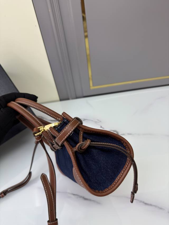 Softlux New Bonnie Mini Denim Bag with Cowhide 1Ba486 This mini handbag/crossbody bag is made of imported washed denim and cowhide, exuding a classic feel. It comes with a detachable and adjustable leather shoulder strap, allowing for crossbody, hand-carry, or shoulder strap carrying. It has a very large capacity and is incredibly practical, making it an absolute must-have for fashionistas. Its small size is just too cute! Quickly bring this retro-style handbag home! Dimensions: Length 23.5cm, Height 12cm x Base 9cm