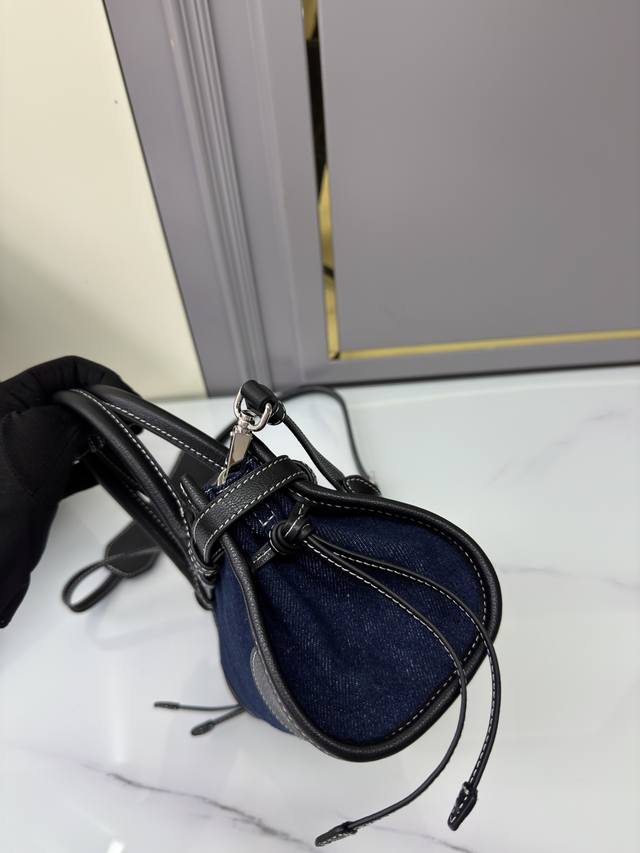 Softlux New Bonnie Mini Denim Bag with Cowhide 1Ba486 This mini handbag/crossbody bag is made of imported washed denim and cowhide, exuding a classic feel. It comes with a detachable and adjustable leather shoulder strap, allowing for crossbody, hand-carry, or shoulder strap carrying options. It has a very large capacity and is incredibly practical, making it an absolute must-have for fashionistas. Its small size is just too cute! Quickly bring this retro-style handbag home! Dimensions: Length 23.5cm, Height 12cm x Base 9cm