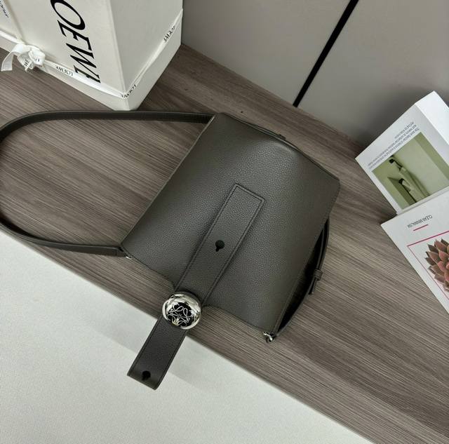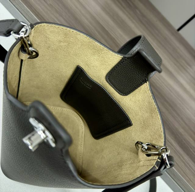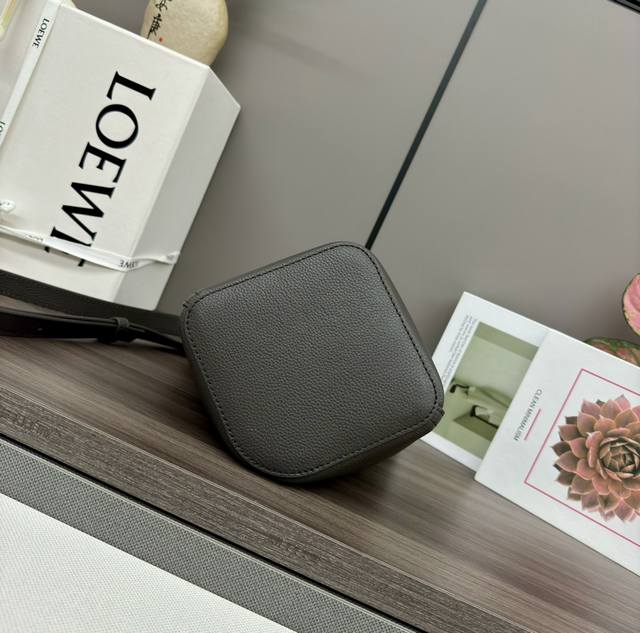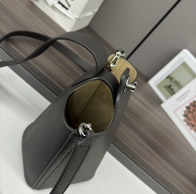 The Lwmini Pebble Bucket bag in soft grain cowhide leather cleverly blends clean, minimalist lines with a striking design, creating a unique and innovative handbag. The signature Anagram engraved hardware combines decorative and practical functions, the adjustable shoulder strap is suitable for multiple carrying methods, and the unique twisted structure complements subtle details. This mini version is crafted from soft grain cowhide leather. Features include: crossbody/shoulder/hand carry, adjustable and detachable shoulder strap, magnetic snap closure, interior pocket, synthetic leather lining, and Anagram engraved pebble design. Size: 16*16*19.5cm. Model: 062342.