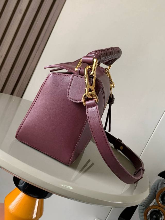 The new small Puzzle handbag in soft calfskin leather is the first tote bag designed by Creative Director Jonathan Anderson. Its rectangular shape and precise cutting techniques create Puzzle's unique geometric lines. This small version is crafted from soft calfskin leather and features a unique woven handle. * This small Puzzle handbag can hold, for example, a large wallet, all-size phones, and sunglasses. It can be worn over the shoulder, crossbody, carried by hand, or held in the hand. Detachable and adjustable shoulder strap. * Zipper closure with calfskin zipper pulls. External zippered back pocket and an internal slip pocket. * Customization is available with shoulder straps and personalized charms. * Suede lining. * Anagram embossing. Size: 24cm