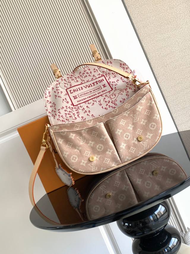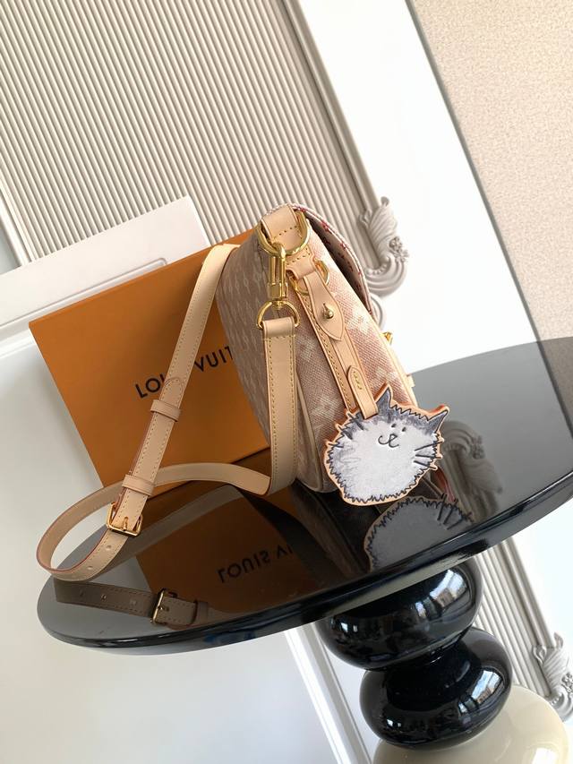 handbag makes its debut in this collection, featuring a canvas body adorned with playful patterns and hand-painted cat-shaped leather trim. Its flexible design offers multiple carrying options, easily accommodating various daily essentials. Model: M15134 Leather: Spanish premium leather Hardware: Imported all-steel hardware Packaging: Full original packaging Dimensions: Length x Height x Width (cm)