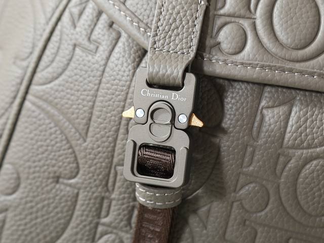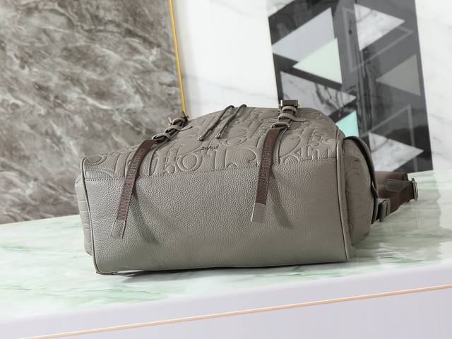 This Dior Hit The Road flap backpack seamlessly blends modern style with Dior's haute couture spirit. The Dior Gravity print leather features an embossed pattern that exquisitely presents the classic pattern on grey calfskin, accented with grey grained leather details. The front is adorned with the Dior logo, showcasing the Dior atelier's master craftsmanship. The flap is fitted with a miniature Cd logo buckle and two Christian Dior logo nylon jacquard straps. It also includes a spacious main compartment and two magnetic side flap pockets. Practical in design, it complements various casual looks. Model: 1Esba205Llg_H Dimensions: 42 x 43 x 16 cm (L x H x W) Main compartment holds one 15-inch laptop, A4 documents, and one tablet. Side pockets hold various mobile phone models. Material: Cowhide leather, fabric lining. Main compartment features a flap and drawstring. Mini aluminum buckle and D-ring. Interior flat laptop compartment. Side magnetic flap pockets. Top leather handle. Adjustable padded shoulder strap. Back panel with padded mesh fabric and Dior logo. Front with metallic copper Dior logo. Interior with embossed Dior logo. Includes dust bag. Made in Italy.