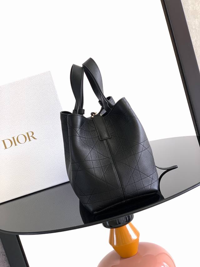 This Dior Toujours handbag made a stunning debut at the Dior Spring/Summer 2023 ready-to-wear collection show, boasting a unique blend of casual and practical design. Crafted from premium calfskin leather with oversized cannage stitching, its spacious interior features compartments and small pockets for neatly organizing everyday essentials. It features a slim leather drawstring closure for secure storage, and an adjustable Cd Lock dial for added style. The medium size includes an adjustable leather handle for hand-carrying or shoulder-carrying. Double closure design: slim drawstring and Christian Dior Paris drawstring with Cd Lock buckle. Features a DIOR charm, a detachable internal pocket, adjustable leather handles, and a dust bag. Made in Italy. Model: 2821. Dimensions: 28.5 x 21.5 x 17 cm (L x H x W). Holds 2 wallets, 1 mobile phone, 2 cardholders, sunglasses, and lipstick.